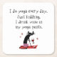 I Do Yoga Every Day Funny Wine Quote with Cat Square Paper Coaster