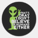 I Don't Believe In Humans Funny Alien UFO Sarcasm Classic Round Sticker