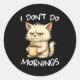 I Don't Do Mornings Funny Quote Coffee Cat Lover G Classic Round Sticker