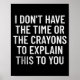 I Don't Have The Time Or The Crayons To Explain Th Poster