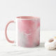 White inscription "I don't have to be perfect, I'm already good" on a pink watercolor background.