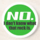 This sandstone coaster features a green logo with the text "No. I don't know what that rock is." For those who receive too many requests to name mysterious rocks.