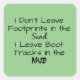 "I Don't Leave Footprints in the Sand, I Leave Boot Tracks in the Mud" is a motivational phrase good for yourself or for friends for moments when you need to be reminded of your strength. Pale green background. Black lettering.