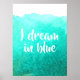 I dream in blue quotation watercolor poster