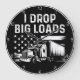 This bold and humourous clock is perfect for the proud truck driver who's not afraid to show off their profession's essence. Featuring a strong semi-truck against an American flag backdrop and the playful phrase "I DROP BIG LOADS," it's a fun and edgy gift for any dedicated road warrior.