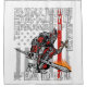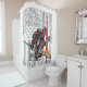 Firefighter shower curtain with red and grey armoured crusader with fiery sword and Christian cross. Though I walk through the shadow of the valley of death, I fear no evil. American flag hangs in the background. Shower curtains for firefighters. Decorate you bathroom in a firefighter theme!