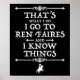 That's What I Do - I Go To Ren Faires And I Know Things. Funny Renaissance Festival accessory would be a great Ren Faire lover gift for a man, woman, teens & kids who love the Ren Fair, jousting, turkey legs, chivalry, and medieval history. Perfect accessory to wear to the Renaissance faire! If you're a fan of Ren fairs, this design is for you. Cool addition to your collection of Ren faire accessories.