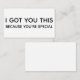 Sometimes you want to dispense with the formalities and cut to the chase. Sometimes you and your tribe prefer a but of humour to your special occasions. This gift tag enclosure card is for you. On two lines, the message reads "I got you this because you're special". The back is blank so you can hand-write a personal message. Fully-editable, you can change the font or its colour, or the background colour. In fact, if you feel so inclined, you can even change the message. It's your card. Make it your own! // Designed by Melody Watson for Paper Muserie.