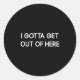 I Gotta Get Out Of Here, Funny, Jokes, Sarcastic Classic Round Sticker