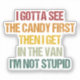 I Gotta See The Candy First Then I Get In The Van I'm Not Stupid - I gotta see the candy first Then I get in the van, ! If you love using sarcasm or know somebody who is always sarcastic.