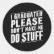 I Graduated Please Don’t Make Me Do Stuff Funny Classic Round Sticker