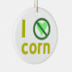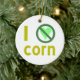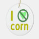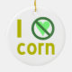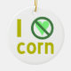 I hate corn. Design uses yellow letters, a green heart and the international "NO" sign to read , "I hate corn". For those that do not "heart" it.