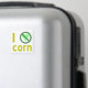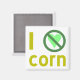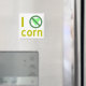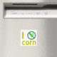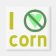 I hate corn. Design uses yellow letters, a green heart and the international "NO" sign to read , "I hate corn". For those that do not "heart" it.