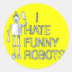 There are few more annoying tropes in science fiction than the annoyingly funny robot. Oh sure, the smarmy whiz-kid is one, I'll grant you that. For now, let the world know you've had enough robotic humour, and keep checking back for the "Any Time's A Good Time To Off A Boffin" design that you know is in the works.