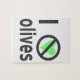 I hate olives. Design uses black letters, a green heart and the international "NO" sign to read , "I hate olives". For those that do not "heart" them, really dislike them, but have a sense of humour (humour), love to laugh and have their funny bone tickled.