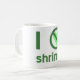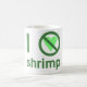 I hate shrimp. Design uses green letters, a green heart and the international "NO" sign to read , "I hate shrimp". For those that do not "heart" it.