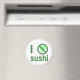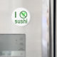 I hate sushi. Funny design uses green letters, a green heart and the international "NO" sign to read , "I hate sushi". For those that do not "heart" it.