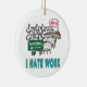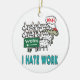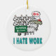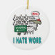 I Hate Work shows the sheep marching happily to their work while our workshy anti-hero heads the other way. The words "I Hate Work" below make the point.