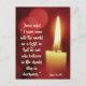 Inspirational scripture Christmas postcard depicts a glowing candle on a red abstract background. It features Bible Verse John 12:46, " I have come into the world as a light, so that no one who believes in me should stay in darkness." The back prayer can be personalized to the greeting of your choice.-