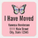 At the top of the sticker, there's a multi-colour butterfly. Under it is the message 'I have moved' (which can be changed to 'we have moved' or other text). At the bottom, you can personalize your moving announcement with your name and new address.