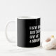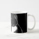 I have only just got up, give me a minute!! Cat illustration white on black mug design.
