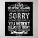 I Have Selective Hearing You Werent Selected Today Poster