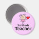 Third Grade magnet has cute stick figure teacher with red heart has 3rd Grade Teacher slogan. It's perfect for putting on the fridge or a metal file cabinet or a classroom chalkboard!
