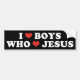 Black background, white text and red hearts. Text reads I Heart Boys Who Heart Jesus.