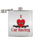 Great car race design for the racing lover. A large heart with chequered flags crossed in the centre. Race cars on either side makes this a unique one-of-a-kind I Heart design.