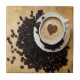 A coffee cup and coffee beans.