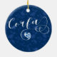 Greek flag in a heart, with Corfu in scripted font, holiday ornament.