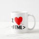 I Heart (Love) HTML Mug. A mug with fully customizable text "I", love hearts "HTML". This cool geek nerd I love HTML mug is fully customizable, add your text and images. A great geeky gift for your computer HTML coding friend or family member!