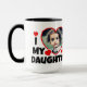 I Love My Daughter with a Heart Custom Photograph. Uploading your photo image will automatically shape it into a heart. Great for parents, fathers, mothers, for their daughter. For her birthday, anniversary, Christmas, valentine's day, and more. Red hearts design, white font/text.