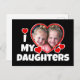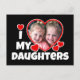 I Love My Daughters with a Heart Custom Photograph. Uploading your photo image will automatically shape it into a heart. For those who has more than one daughter. Great for parents, fathers, mothers, dad, mom, for their daughter. For her birthday, anniversary, Christmas, valentine's day, and more. Red hearts design, black font/text.