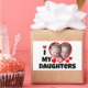 I Love My Daughters with a Heart Custom Photograph. Uploading your photo image will automatically shape it into a heart. For those who has more than one daughter. Great for parents, fathers, mothers, dad, mom, for their daughter. For her birthday, anniversary, Christmas, valentine's day, and more. Red hearts design, black font/text.