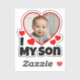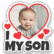 I Love My Son with a Heart Custom Photograph. Uploading your photo image will automatically shape it into a heart. Great for parents, fathers, mothers, for their boy. For his birthday, anniversary, Christmas, valentine's day, and more. Red hearts design, white font/text.
