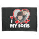 I Love My Sons with a Heart Custom Photograph. Uploading your photo image will automatically shape it into a heart. For those who has more than one son. Great for parents, fathers, mothers, for their boys. For his birthday, anniversary, Christmas, valentine's day, and more. Red hearts design, white font/text.