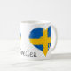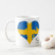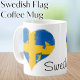 This design features a a Swedish flag in the shape of a heart with the word Sweden to indicate I Love Sweden.