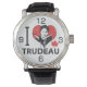 I Heart Trudeau. I Love Justin Trudeau. With a red Canadian Maple Leaf. Canada's Liberal Prime Minister. Justin's face done as a graphic illustration and finished in a grunge, distressed look. With black numbers.
