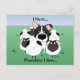 A big nosed Border Collie surrounded by sheep in a pastoral setting with the words I Herd....Therefore I am.