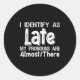 I Identify As Late My Pronouns Are Almost There Classic Round Sticker