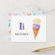 "Letter I is for Ice Cream" in our Alphabet Flash Card set. Get all 26 letters of the alphabet! A double-sided postcard that is great for memory games and teaching, geared for education, schools, teachers and homeschoolers for kindergarten and babies. All text is editable if you need to customize.