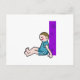 Illustration of a cute little cartoon boy climbing over a giant letter i. Image available on various gifts and products. Postcards.