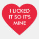 This is a cute red sticker that says, I LICKED IT SO IT'S MINE, making it perfect for the person who doesn't want to share, and can mark their items.