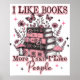 Vibrant, colourful design featuring a stack of books with flowers, butterflies and mushroom. The colourful text reads: "I like books more than I like people". This design is available on a wide variety of products.