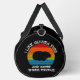 I actually had been searching other sites for a duffle gym bag and I couldn't find any. This one is just what I was looking for with all the features. The inside zip pocket, the outside mesh pocket and LOTS of room inside. Love the printing. Really like how the floral print turned out.