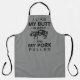 "i like my butt rubbed and my pork pulled" long gray bistro chefs bbq cooking apron , with pig cuts silhouette diagram
