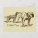 Dog Sniffs Butt Humour. English Setter sniffs a Bulldog's butt with the slogan "I Like You". Funny dog graphic illustration.