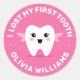 Stickers featuring a little tooth fairy on a hot pink background and the text "I lost my first tooth" and customizable name below.