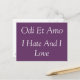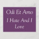 A purple postcard with a latin phrase! Odi et amo is the start of a famous poem by the Roman poet Catullus.